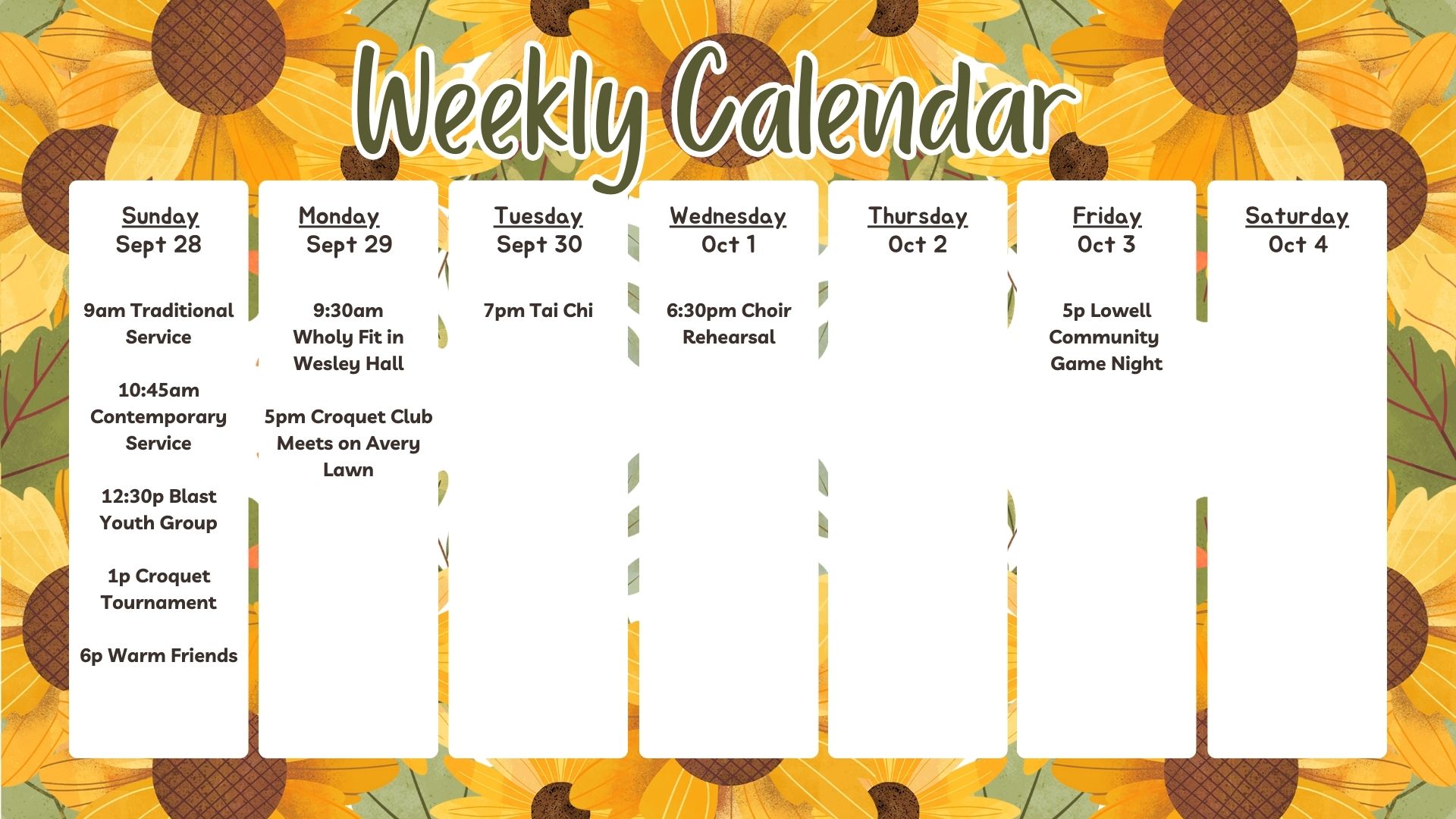 Lowell is a dynamic United Methodist Church that seeks to Discover. Grow. Share! Welcome. Worship With Us Ministries Our Staff Youth Opportunities Join us each Sunday at 9am for Traditional, and 10:45am for Contemporary Worship Service. Quick Look of Upcoming Events: